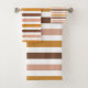 Mostaza boho, rayas marrones y rosas en un estilo retro moderno con toalla de baño.