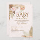 This boho pampas baby shower invitation features soft neutral colors and an elegant, modern layout. The design includes natural pampas elements for a warm and gender-neutral look. All text—name, date, time, location, and wording—is fully editable, allowing you to customize the invitation for any baby shower celebration.