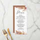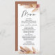El elegante menú de la ducha nupcial con temática boho incluye arreglos florales con pampas. El encabezado de caligrafía es una imagen que se puede eliminar. La parte trasera del menú es un color de terracota que también puede alterarse. Este diseño es ideal para una moderna ducha de matrimonio con temática boho.