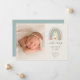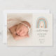 Hermoso y sincero anuncio de nacimiento de su bebé arco iris tiene un arcoiris dibujado a mano en colores de tono de tierra inspirados en boho, con "acogedor [nombre]" y estadísticas de nacimiento de su bebé debajo. Personalice con una foto de cada lado y añada un mensaje personal al reverso.