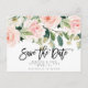 Un diseño de flores y vegetación rosa/rubor de bonito ahorra la postal de fecha. Fácil de cambiar los detalles del texto a los tuyos. Montones de diseños de fondo coincidentes en esta colección de bonitos. Por favor, visite mi tienda para ver la gama completa.
