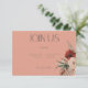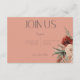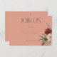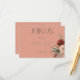 Le presentamos nuestra exquisita tarjeta de recepción de bodas floridas de otoño y bodas con flores, una mezcla perfecta de elegancia y encanto bohemio. Esta impresionante tarjeta presenta un fondo de óxido de melocotón que marca el tono para una celebración romántica y atemporal. Esta carta, adornada con dos encantadores ramos de boho floral, encarna la esencia de la belleza natural y el encanto rústico. Los boho floridos ramos de flores de color crema, melocotón, rubia y de tonificación rojiza están meticulosamente decorados con una exuberante vegetación. Estas eéreas flores simbolizan el amor, la alegría y la promesa de un futuro floreciente juntos. La combinación armoniosa de colores y texturas crea un espectáculo visual encantador que cautivará a los clientes. Deja que tu historia de amor se desarrolle con estilo con esta carta encantadora que te dará el tono perfecto para tu día especial. Creado por Simply Farmhouse Press, es parte de la suite de tarjetas Boho Rust & Neutral Fall Floral Peach Rust boda.