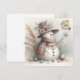 Desafía el frío enviando a una cálida Navidad de nieve, vestida con una cucaracha rosada, azul y tan cálida bufanda y un hermoso gorra de paja floral. Con las manos de palos sosteniendo una flor silvestre y la pampa de fondo, este saludo seguramente calentará algunos corazones. Plantillas proporcionadas en la parte posterior, así como una "Feliz Navidad" en la parte posterior.