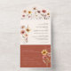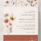 Boho Terracotta Floral Todo en una Invitación de Boda. Flor silvestre Terracotta de la Moda Boho en una invitación de matrimonio. Invitación minimalista estilo bouquet bohemio con flores silvestres de terracota y botánicos elegantes y únicos en acuarela impresa a mano. El color de fondo del tono de la tierra es magnífico para bodas neutrales y bodas de terracota. Invitaciones simples e imprimibles para la primavera, el verano, el otoño (otoño) y las bodas de invierno.