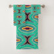 Toalla de baño Set de 3 accesorios decorativos de baño y decoración de mobiliario de hogar impresos con el diseño del patrón de geode de la Moda del Boho del suroeste Tropical ilustracion de arte original de la impresión TheFabricSeal en la tienda a petición en Zazzle.com #ZazzleMade https://www.zazzle.com/store/thefabricseal TheFabricSeal ©️ original. abstracto contemporáneo moderno con líneas onduladas como las onduladas para un ilustracion de diseño artístico de patrones de entramado de retablo geométrico alternativo y estilístico. Los bonitos tonos de color son perfectos para la decoración de tu casa, la moda y los accesorios electrónicos y para regalar ideas. El esquema de color presenta una mezcla de influencias del Oeste Americano, estilo artístico bohemio y tropical y colores de currant negro, mostaza de mariscos amarillo dorado, turquesa azul verde azul, merlot morado, azul pavo real, espuma de mar caribeña, menta verde fría y verde marina de color verde verde azulado.