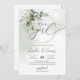 Se trata de una moderna invitación a la ducha de moda para bebés al estilo boho con vegetación fresca y chispas de purpurina de oro combinadas con eucalipto