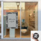 Exhibición de ventana elegante y con estilo con espacio para agregar su logotipo o texto de negocio en un rectángulo insertado. Un gran letrero publicitario neutral para su negocio. Vinilo para Ventana Boho Warm Grays Mandalas