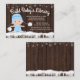 Los niños traen un libro con tarjetas de bebé con adorables bebés usando un lindo traje de invierno azul con un gorra en una madera rústica y fondo de copos de nieve. Agregue el texto al frente y al reverso para personalizar el evento.