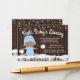 Los niños traen un libro con tarjetas de bebé con adorables niños étnicos usando un lindo traje de invierno azul con gorra en un rústico bosque y fondo de copas de nieve. Agregue el texto al frente y al reverso para personalizar el evento.