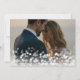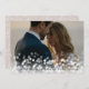 Elegante tarjeta de agradecimiento para bodas presenta una foto orientada al paisaje de sangre completa con un brillo de la bóveda de luz para un aspecto de burbuja de moda. "Con nuestro agradecimiento" o su elección de mensaje está en la letra negra del guión, con sus nombres a la par. Añade dos fotos adicionales a la parte posterior, junto con un mensaje de agradecimiento pre-impreso de un personalizado, en un fondo con patrones botánicos neutrales.