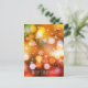 Tarjeta postal de Navidad con un texto de Feliz Navidad en color blanco. Luces bokeh coloridas y vívidas con hermosos copos de nieve blancos de diferentes tamaños y formas. Desea a tus amigos y familiares felices fiestas con esta tarjeta festiva y moderna.