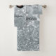 Falso moderno chirrido sobre el fondo del bokeh purpurina plateado con un mensaje motivacional.