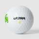 Las hojas de marfil se agrupan en tres grupos, con las iniciales en la hoja central. Las hojas tridimensionales con forma de gel son oscuras y verdes. Las iniciales están en negro.