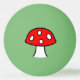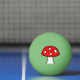 Una bola de ping-pong con una seta en ambos lados. El hongo tiene un casquillo rojo de la bóveda y puntos blancos. Ha dibujado en un estilo simple del dibujo animado.