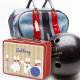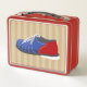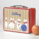 Crea un accesorio personalizado perfecto para tu bolera favorita. Esta lonchera está lista para ser personalizada con un nombre en letras de escritura azul y cuenta con ilustraciones de boliche y boliche. El lado inverso tiene un ilustracion de coordinación y una bolera.