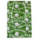 Feliz mensaje de cumpleaños número 70 sobre césped verde con bolas de golf blancas. Se puede cambiar la edad de nacimiento.