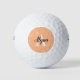 Bolas de golf elegantes con estilo de guion de monograma, fácil de personalizar el nombre y el inicial, utilizando la plantilla de personalización en línea antes de realizar el pedido. El diseño incluye una colorida melocotón / negro / blanco para el atractivo femenino y la visibilidad, junto con un monograma inicial y nombre para la identificación para ayudar a evitar que las bolas se pierdan.