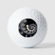 Espirales de marfil y perlas azules en una espiral sobre un fondo negro.