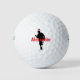 Bolas de golf personalizadas para Navidades. Silueta negra de un golfista de celebración con un club de golf en la mano y un gorra de Santa Claus rojo y blanco en la cabeza. Personalice su nombre al otro lado del frente.
