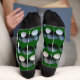 La imagen es un diseño de tazones de césped verde y negro con un gato en un patrón repetido