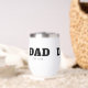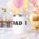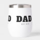 This steel stemless wine tumbler features a bold black serif font that says 'Dad', which you can swap out for a different (short) term or name, followed by the established line, where you can add the year you became a father. All colors and elements can be edited in the Zazzle design tool. ••• For more Father's Day gifts, visit my store Zazzle.com/Yeah_The_Boys ••• For custom orders, message me on Zazzle