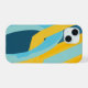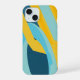 Vibrant yellows and blues bold geometric abstract with ring and stripes slim protective iPhone case for art lovers and gift buyers, Mid century modern inspired minimalist abstract design strong graphic lines and soft brush texture ideal as a statement phone accessory, Contemporary abstract illustration featuring contrasting blue rings and golden stripes versatile gift for her or him and daily protection.