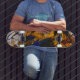 This deck is pure visual thunder—fiery gold slams into deep navy and charcoal smears, like a supernova frozen mid-burst. Raw, gritty textures meet explosive color in a design made for those who ride like they mean it. Whether you're flipping tricks or framing it as art, this board brings fearless energy to every angle.