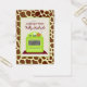 Un juego de 100 tarjetas de recetas (tarjetas de presentación regordetas) con el ilustracion de una estufa verde brillante de inspiración retro sentada en una superficie borgoñona con una olla naranja sentada en el quemador derecho delantero. El fondo es la huella de la jirafa.
