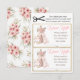 Boletos de rifa de pañales tribales con adorable zorro de bebé niña y teepee en un fondo floral rosa y dorado.. Estos boletos de rifa de pañales tribales de zorro lindos vienen impresos dos por hoja. Simplemente recorta y colócalos en el sobre con tus invitaciones.
