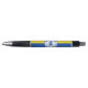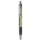 Pluma con la bandera de Riverside, California. Una bandera amarilla y azul con el sello de la ciudad en el centro