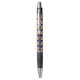 Guay y la pluma de moda que muestra una imagen de una flor Dahlia amarilla en un fondo azul marino e impresa en un patrón de repetición.