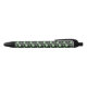 Sencilla cabeza extraterrestre verde con grandes ojos negros y una pequeña boca negra sobre un fondo gris oscuro.