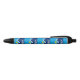 Pluma con un diseño con la bandera de Orem, Utah. Una bandera azul, blanca y amarilla con picos de montaña y el sol en el centro