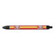 Pluma con diseño con bandera de Vilnius, capital de Lituania; bandera roja con franja amarilla y escudos de armas con dos leones dorados sosteniendo un escudo en el centro