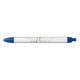 Elegante bolígrafo de tinta personalizado con iniciales de monograma de letra cursiva de moda y nombre en colores dorado, azul y blanco editables para un look elegante o profesional. ASISTENCIA: Para ayuda con la modificación del diseño o personalización, cambio de color, cambio de tamaño, transferencia del diseño a otro producto o si desea artículos coordinados, contacte al diseñador ANTES DE REALIZAR EL PEDIDO a través de la pestaña de MENSAJE de chat de Zazzle a continuación o envíe un correo electrónico a makeitaboutyoustore@gmail.com.