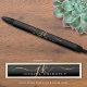 Elegante bolígrafo de tinta negra y dorada personalizado con iniciales de monograma de letra manuscrita de moda y nombre en colores negro, dorado y blanco editables para un look elegante o profesional. ASISTENCIA: Para ayuda con la modificación o personalización del diseño, cambio de color, cambio de tamaño, transferencia del diseño a otro producto o si desea artículos coordinados, contacte al diseñador ANTES DE REALIZAR EL PEDIDO a través de la pestaña de MENSAJE de chat de Zazzle a continuación o envíe un correo electrónico a makeitaboutyoustore@gmail.com.