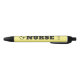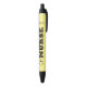 Haga que su documentación para el paciente se divierta con esta Enfermera Estetoscope Pastel Yellow Personalized Name Black Ink Pen. Está diseñado con un fondo amarillo claro de personalizable y tiene una silueta de estetoscopio negro seguida por el texto "enfermera" con grandes letras negras. Cada pluma también es personalizada con su nombre.