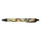 Para una pluma con espadas de serpiente, aquí hay una descripción detallada: el cuerpo de la pluma está intrincadamente diseñado para parecerse a una serpiente sinuosa y elegante enrollada alrededor de una espada larga y estrecha. La cabeza de la serpiente forma la tapa de la pluma, con los ojos brillando como pequeñas esmeraldas. Las escalas de la serpiente están finamente grabadas, dándole al cuerpo un ambiente texturizado y parecido a la vida. La hilera de la espada forma el agarre de la pluma, decorada con tallados ornamentados y acentos metálicos, mientras que la cuchilla es fina y aguda, sirviendo como punto de escritura. El acabado de la pluma tiene una capa metálica, mezclando los tonos plateados con los de esmeralda profunda, haciendo eco de la belleza natural de la serpiente y de la elegancia mortal de la espada.
