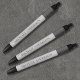 Un bolígrafo de negocios de metal cepillado plateado elegante que coordina con la carpeta de documentos importantes. Características fuente serif elegante en un fondo de metal cepillado plateado. Diseñado para ti por Blackberry Boulevard.