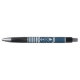 Diseño de temática náutica con símbolos náuticos (ancla, velero, velero, brújula) sobre fondo rayado blanco y azul marino.