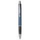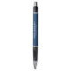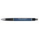 Bolígrafo perfecto con Escalas de Justicia para abogados, abogados y otras profesiones legales. Texto personalizable. Elegante fondo de textura metálica azul.