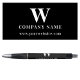 Un diseño de bolígrafo de empresa simple y elegante con fondo negro, nombre monogramado y sitio web de texto personalizado. Personalice los detalles del bolígrafo monogramado y hágalo suyo. Un diseño de bolígrafo ideal para promociones comerciales, papelería de empleados, regalos para clientes, marketing y publicidad empresarial.