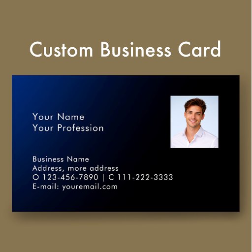 Personalize this stylish blue gradient business promotional pen with your name and business contact details. All the modern clear white script is editable. This minimalist professional business pen will give your clients a great impression. Share your name, profession, address, email, website and more with this classy customer gift. The dark blue and black pen would be perfect for a cyber security specialist, financial advisor, IT consultant, property manager, lawyer or doctor.