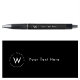 Un hermoso diseño de monograma utilizando tu nombre e inicial en una forma de círculo elegante. Un diseño minimalista negro con acentos blancos. Personaliza el monograma y el texto y hazlo tu diseño único.