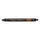 Esta impresionante pluma personalizada presenta un óvalo naranja con seis cuervos. Cada cuervo tiene ojos amarillos con pupilas negras y alas estiradas. Los cuervos están volando unos hacia otros formando una forma oval. El fondo es negro. Hay texto de personalizable en la pluma para que pueda personalizarlo con el mensaje que desee.