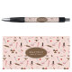 Un patrón adorable de utensilios de repostería y cocina con tema rosa y marrón. Las ilustraciones con tema de cocina de panadería incluyen un rodillo, batidor, manga pastelera, postres, espátulas, cucharas y más. Pegatina perfecta para negocios de repostería casera, chef pastelero profesional, panadería, tienda de postres y más.