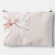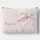 Se trata de una elegante y elegante bolsa de maquillaje personalizada con un suave fondo rosa adornado con un gran y delicado arco de cinta rosa. El diseño desprende un encanto femenino y sofisticado, perfecto para llevar sus productos cosméticos y de belleza esenciales. La bolsa se puede personalizar con un nombre, lo que la convierte en un regalo único y atento. Imagen de fondo de Freepik
