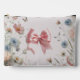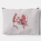 Esta bolsa de maquillaje tiene un encantador arco de coqueta rosa con suaves acentos de flor silvestre en la parte delantera y una sola proa en la parte trasera donde se puede personalizar con un nombre, todo ello colocado sobre un fondo polvoriento rosado, convirtiéndolo en un accesorio funcional y elegante.