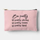 Admire la elegancia y el empoderamiento con esta encantadora bolsa de accesorios de suave rosa pastel. Adorada con la inspiradora frase "Sé Bonito, Bonito fuerte, Bonito valiente, Bonito amable" y corazones de acento, esta bolsa es un hermoso recordatorio de fuerza interior y gracia. Perfecto para guardar sus necesidades básicas con estilo, añade un toque positivo a su rutina diaria.