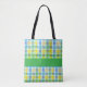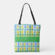 Bolsa de compras de Tote de gingham azul amarillo verde con mis gráficos aplicados a artículos para crear productos que no encontrarás en ninguna otra parte.